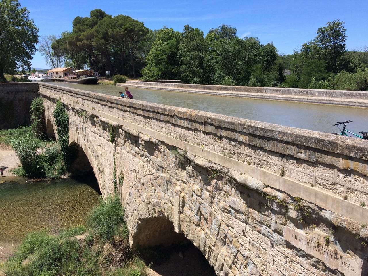 Les enfants découvrent leurs premières écluses, et c’est l’occasion de faire la connaissance de deux australiens que nous avons déjà aperçus à Narbonne. Ils nous dépassent lorsque l’on fait une pause, et on les rattrape à l’écluse suivante. Rapidement, les gamins font comprendre qu’ils veulent monter à bord, et ils traverseront rituellement toutes les écluses à bord de de l’Arkaroola. Nous dépassons le Somail en fin de journée et nous nous installons pour la nuit.