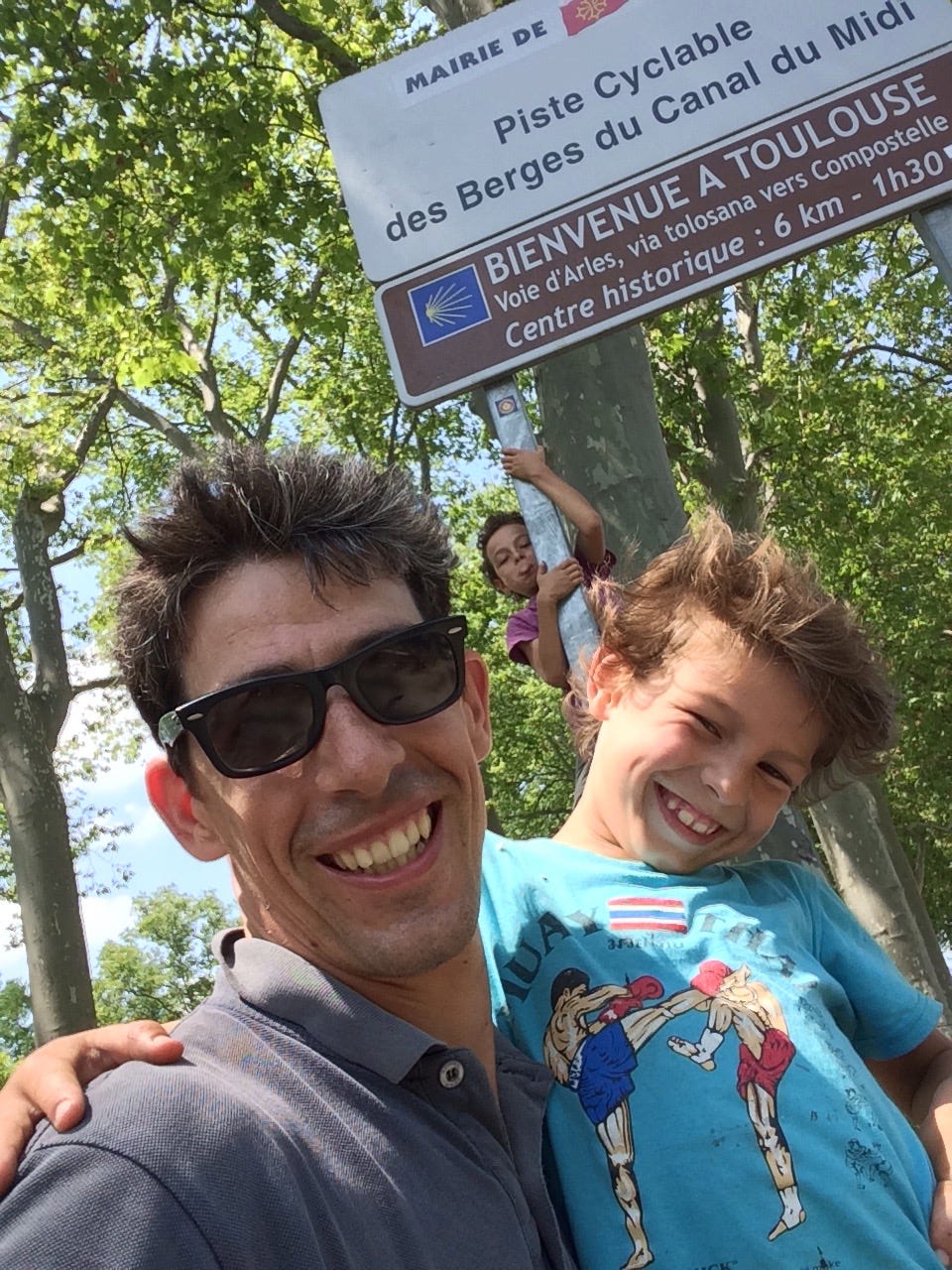 Nous voici arrivés à Toulouse, les enfants ne se rendent pas bien compte. A la rentrée suivante, l’aîné se fera traiter de menteur par ses copains lorsqu’il leur dira qu’il a fait 150km à vélo.