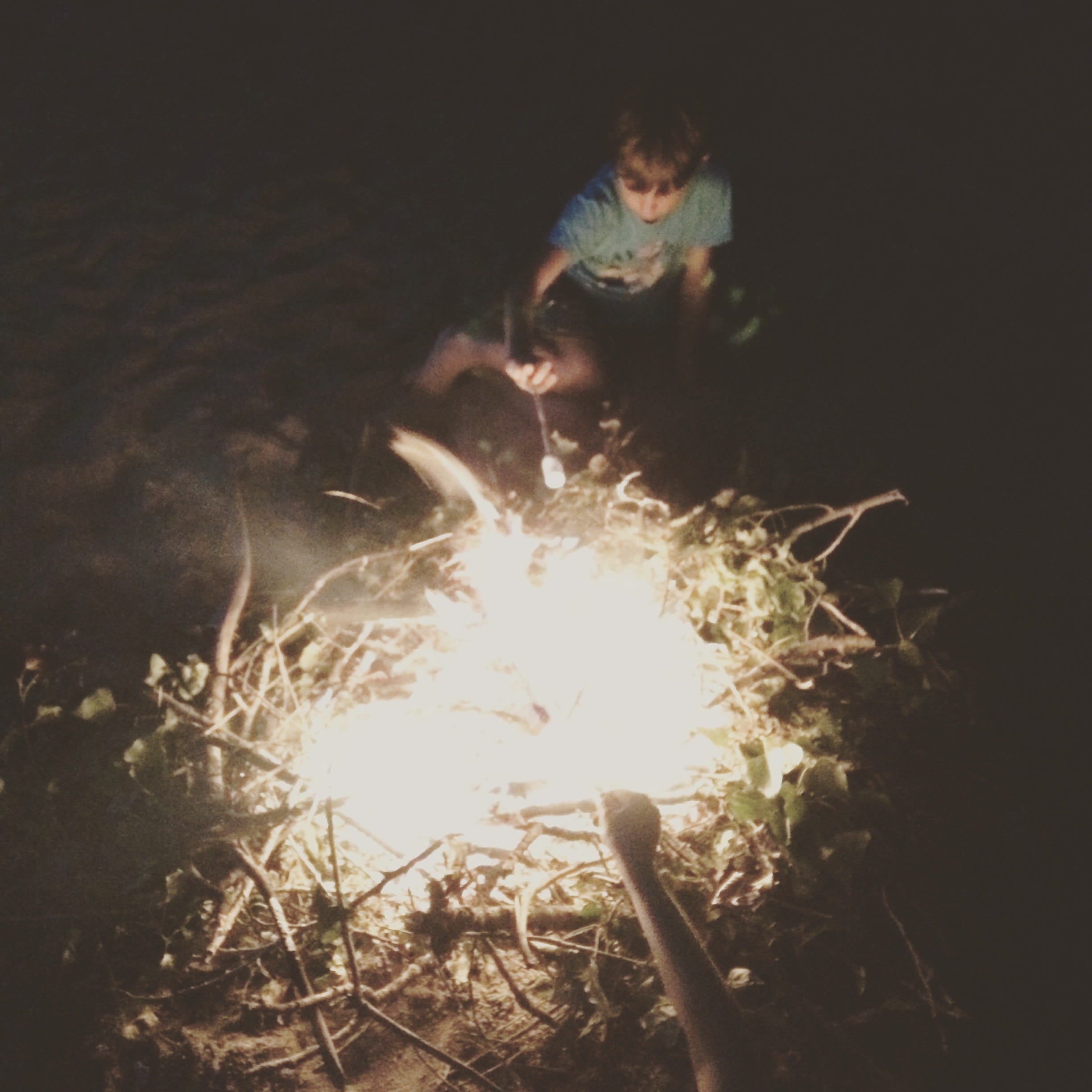 Nous dépassons Amboise, et nous campons sur une petite île pour le plus grand plaisir des enfants. Il fait enfin beau, plus de risque de montée des eaux. Les enfants pêchent, découvrent — ou plutôt refusent de découvrir — les joies des toilettes extérieures. Nous préparons du bois en rab pour faire un grand feu de joie lorsque la nuit sera tombée.