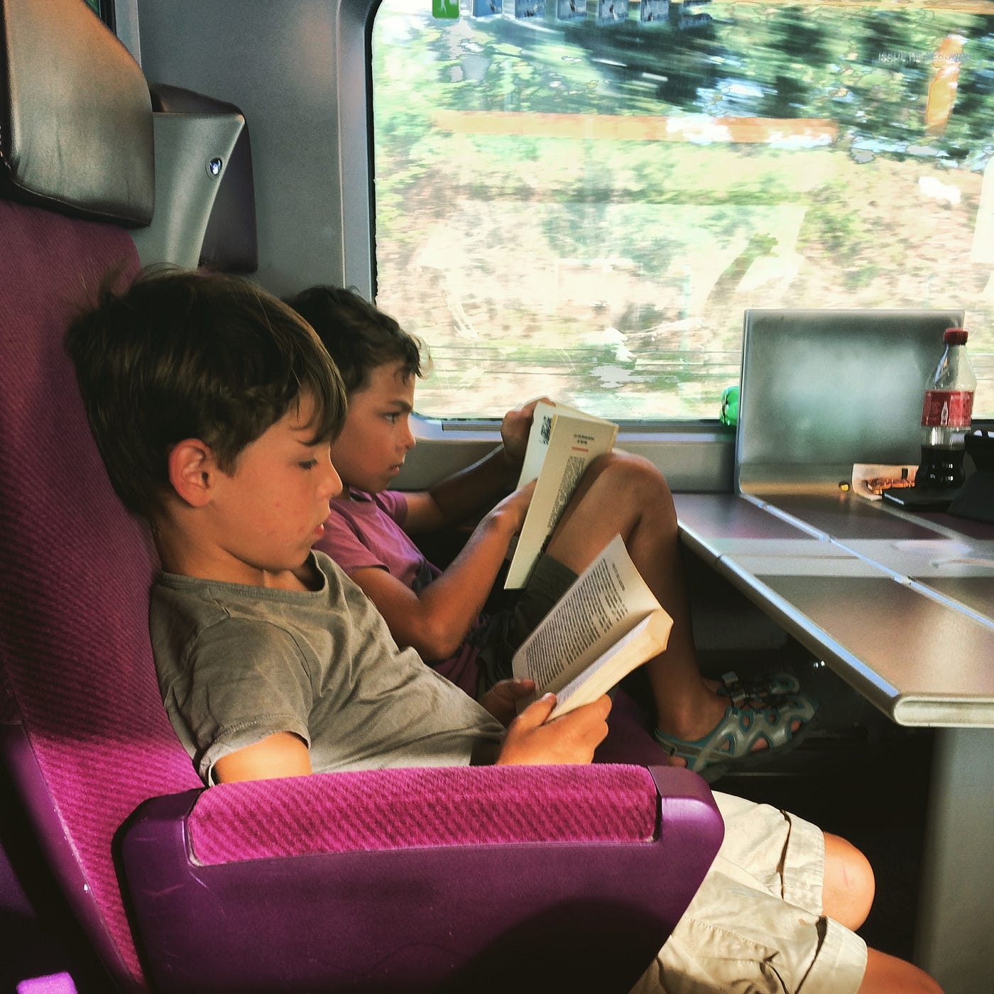 Encore un effort et nous voilà à Saumur. J’avais vendu le canoë à l’avance, et convenu que l’acheteur nous déposerait à la gare en repartant. C’est chose faite et nous voilà dans le TGV, avec tout le confort moderne, la clim et les bouquins !