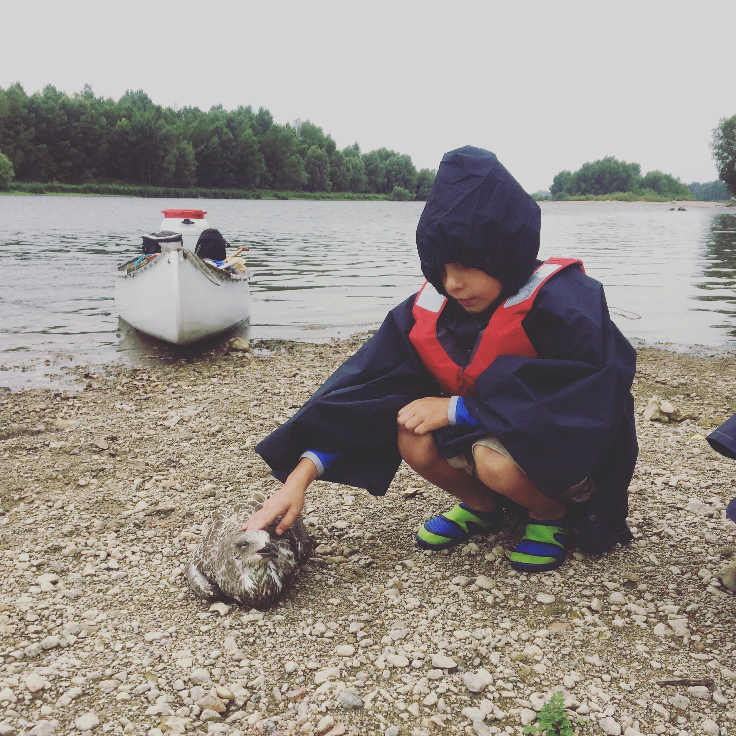 Le temps se découvre juste assez pour prendre un petit coup de soleil, nous repartons ragaillardis. On sauve un bébé goéland de la noyade — mais probablement pas d’une mort certaine, rapport à sa patte cassée — et on rencontre un groupe avec lequel nous prenons le repas du midi. Nos chamalows ont un certain succès, et c’est à partir de cette étape que nous ne verrons plus grand monde sur le parcours. La base nautique de Vineuil ayant son petit prestige, la Loire est assez fréquentée dans les 20km amont/aval de Blois. Au delà, en revanche…
