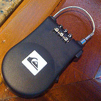 Chez Quiksilver, un cadenas extensible très pratique à combinaison est à 1 695 XPF.